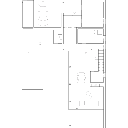 La maison est construite sur une parcelle située en deuxième plan par rapport à la traversée du village. Orientés vers l’ouest, les espaces intérieurs s’ouvrent sur une zone verte non-construite.